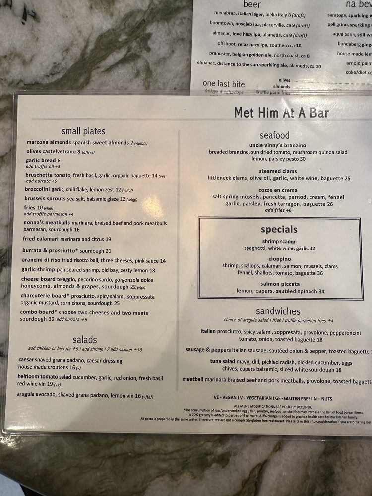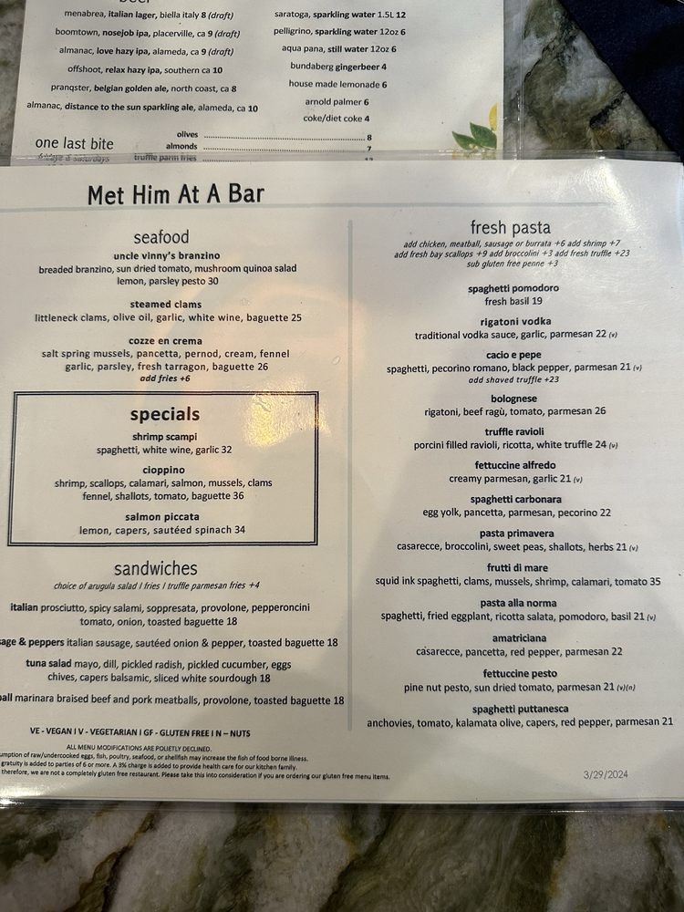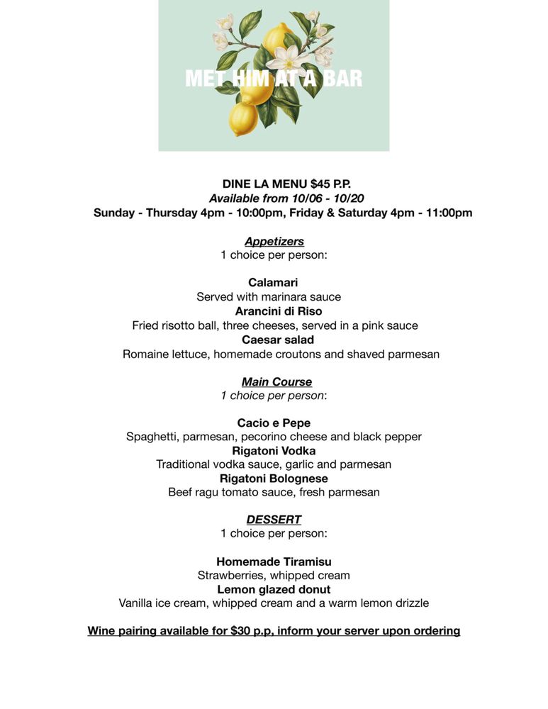 Met Him At A Bar Menu (Update 2025)